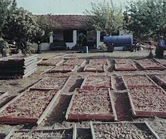 luftig aufgestellte Gitter oder Matten zur Sonnentrocknung ausgelegt. Nach dem Trocknen, das 4 - 5 Tage dauert, werden die Feigen in Säcken zu