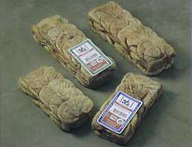 gepreßt und dann hintereinander in die Verpackung gelegt.