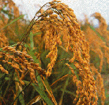 zahlreichen Körnern trägt. An den Boden stellt Reis geringe Anforderungen. Nur schwer muß die